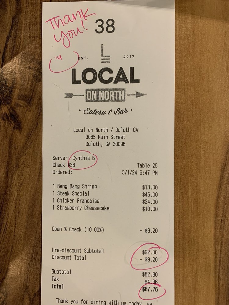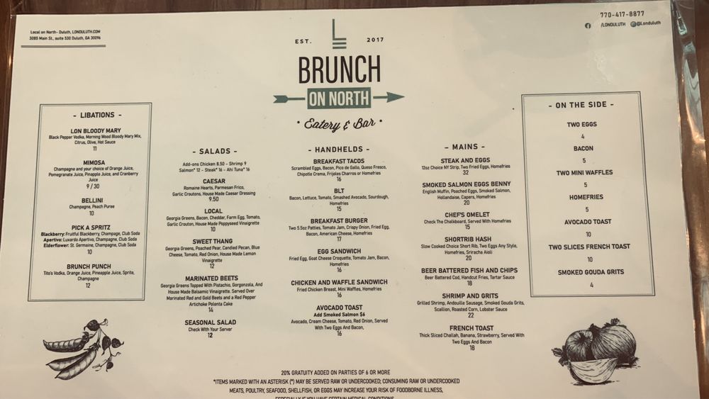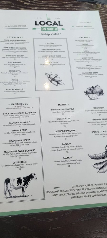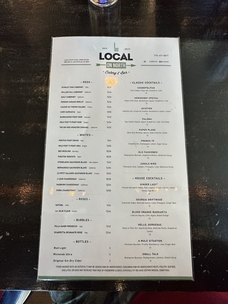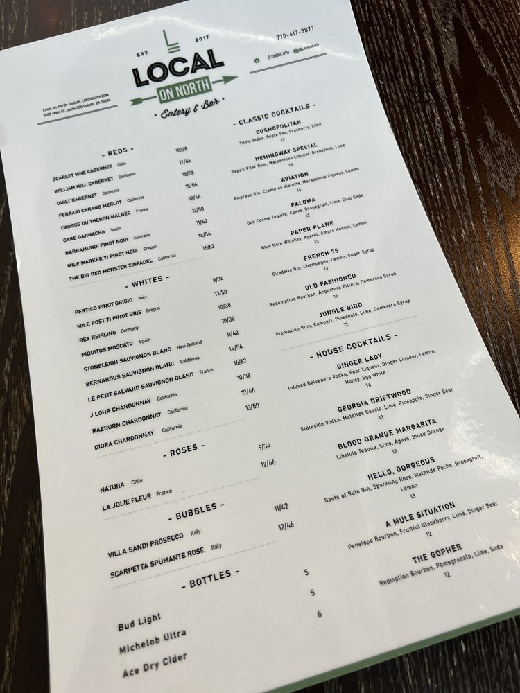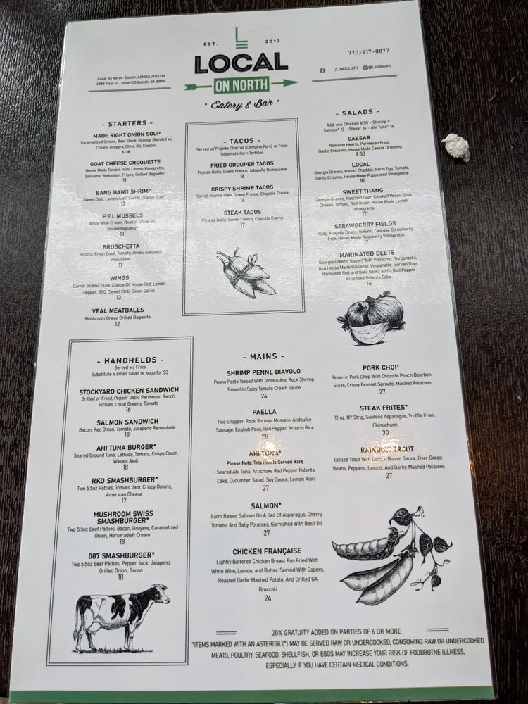 Local On North - Duluth is a trendy New American bar located in Duluth, GA. Offering a diverse menu with pescatarian and vegetarian options, the restaurant stands out for its delicious dishes and top-notch service. Customer reviews praise the flavorful food, such as the salmon sweet thang salad, pork tacos, barbecue sauce, and shrimp diavolo. The ambiance is welcoming, with options for outdoor seating, private dining, and a full bar with specialties like espresso martinis. The 007 smash burger and fish tacos are highlighted as must-try items, accompanied by house-made sauces and unique flavors. Despite some delays, the overall dining experience is exceptional, with memorable dishes like the paella with red snapper. Local On North - Duluth is a must-visit for those seeking a delightful culinary adventure in a vibrant setting.